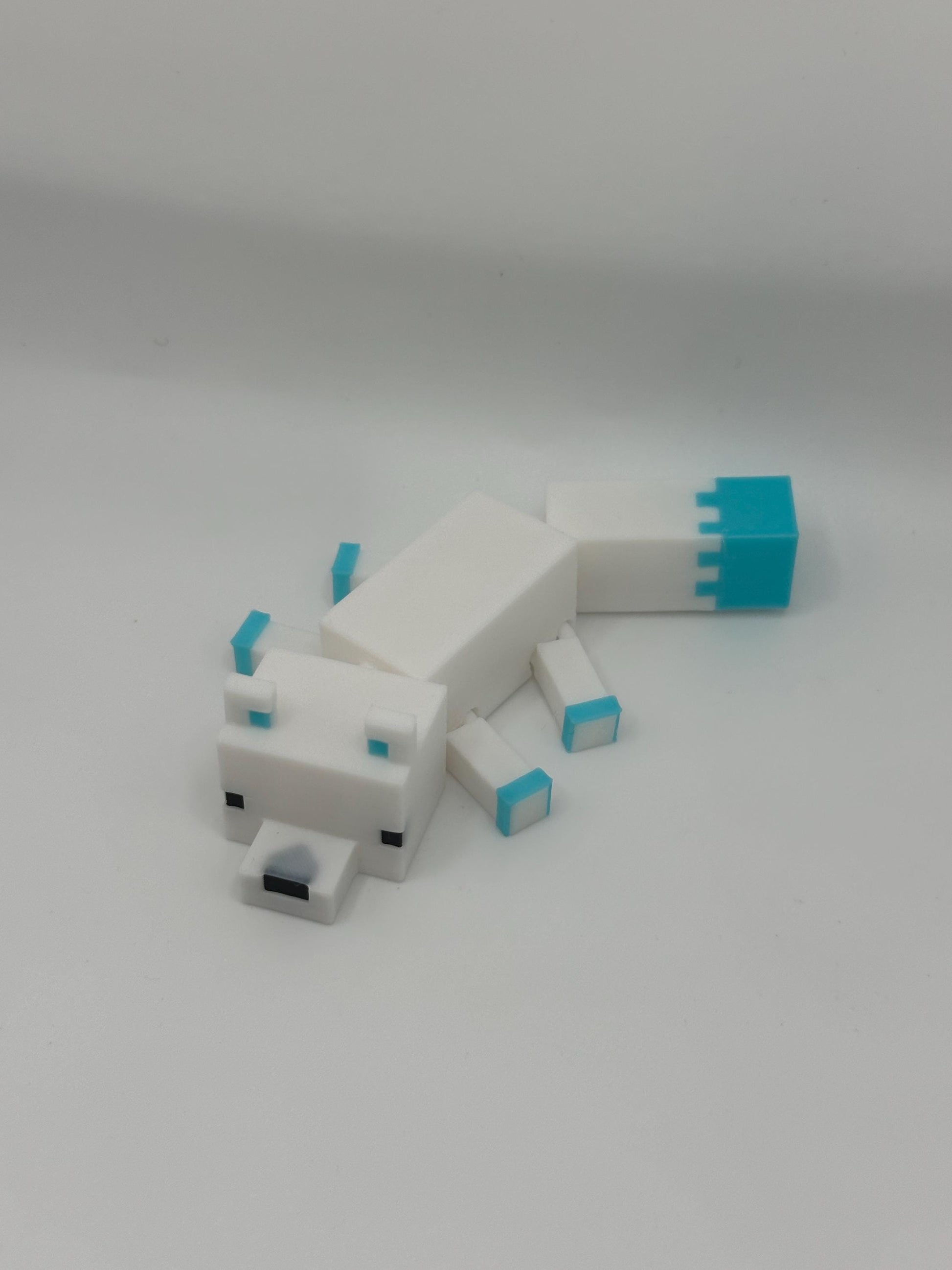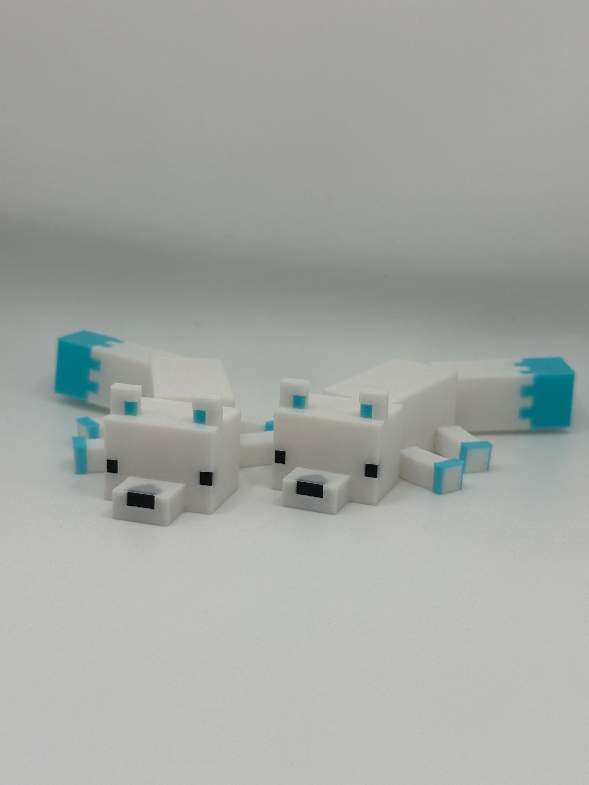 Chill out with this frosty and fun snow fox! This arctic pixel fox is 3D printed in a sleek blocky style with icy blue details and an articulated body for playful posing. Whether you’re into voxel art, gaming, or just love cute collectibles, this snow fox is a perfect wintery companion.