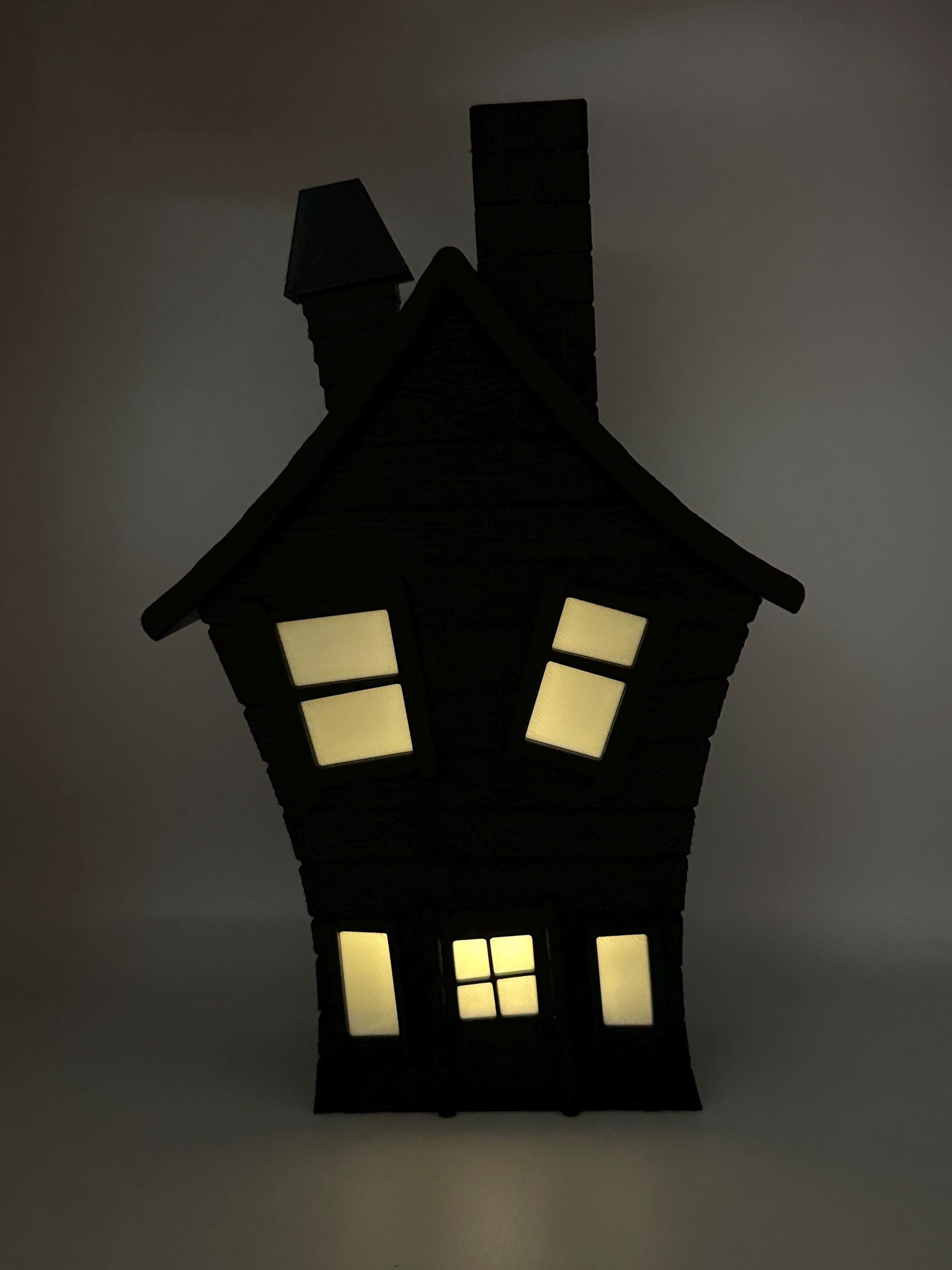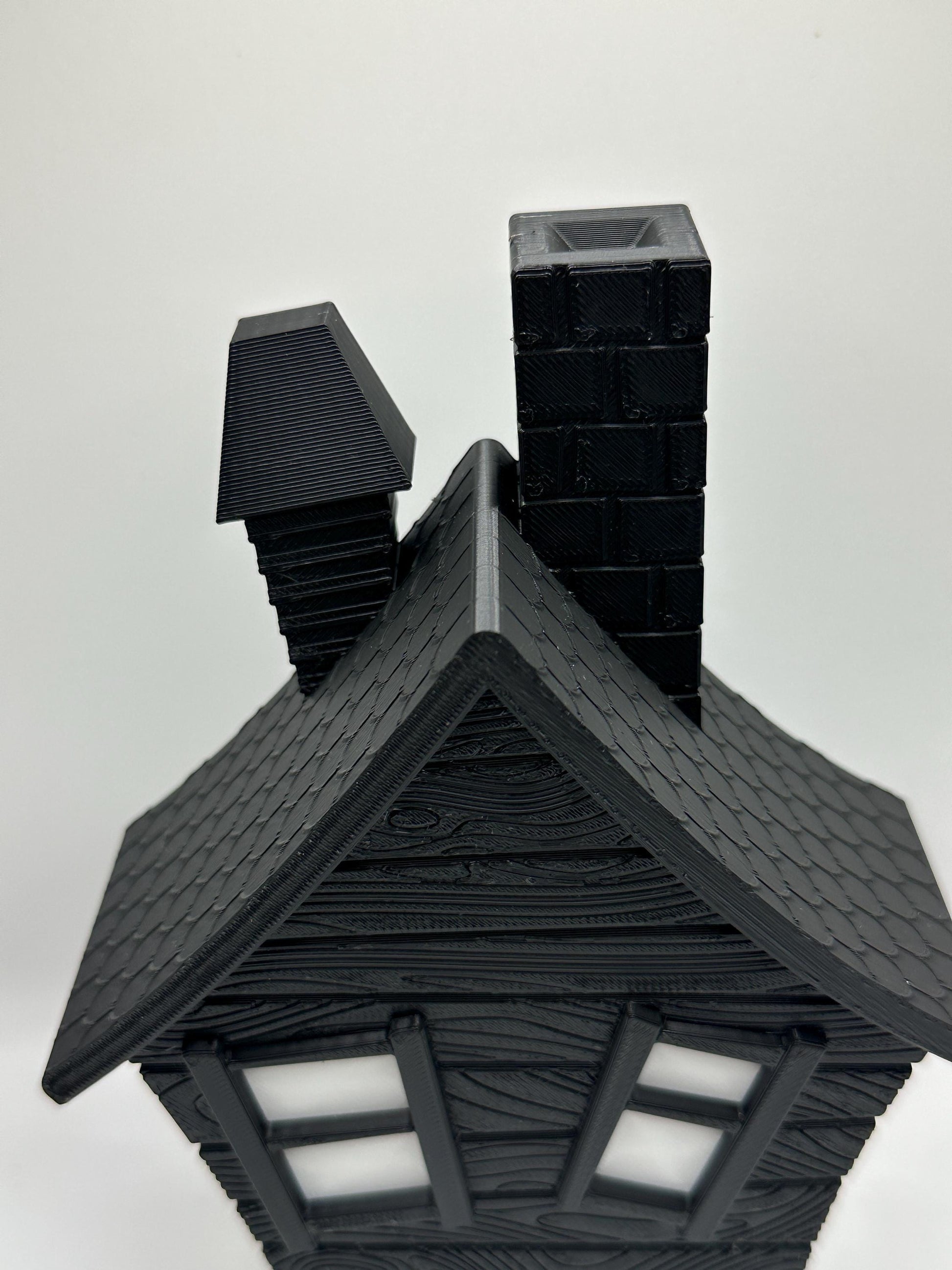 🏚️🕯️ This 3D printed haunted house features crooked walls, eerie windows, and gothic charm. When lit with the included LED tea light, the windows glow with a spooky warm light, making it the perfect Halloween centerpiece, haunted mansion display, or gothic home accent.