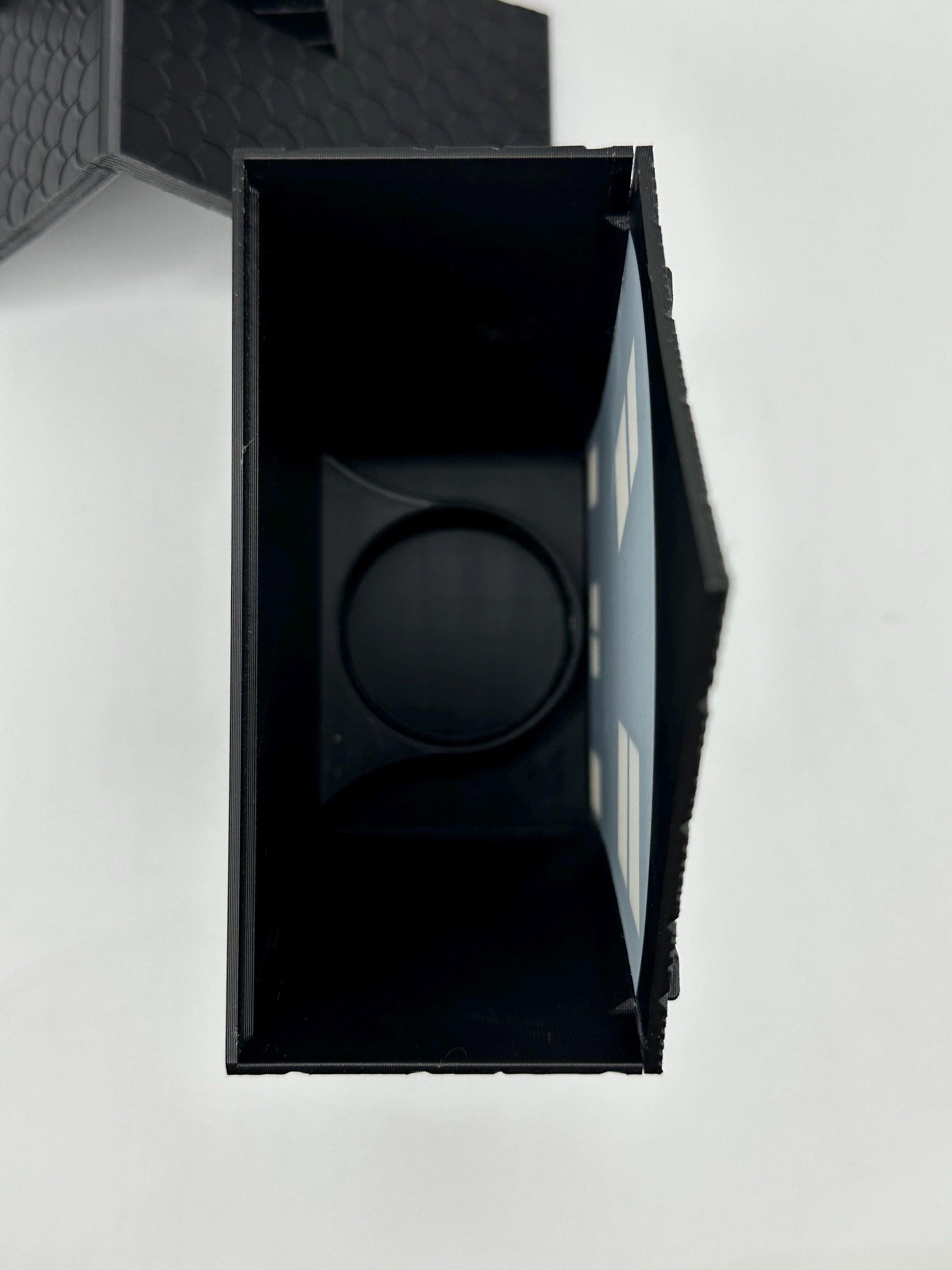 • 3D printed with durable black PLA filament, detailed with woodgrain texture • Includes 1 LED tea light candle – safe, flameless, and ready to glow