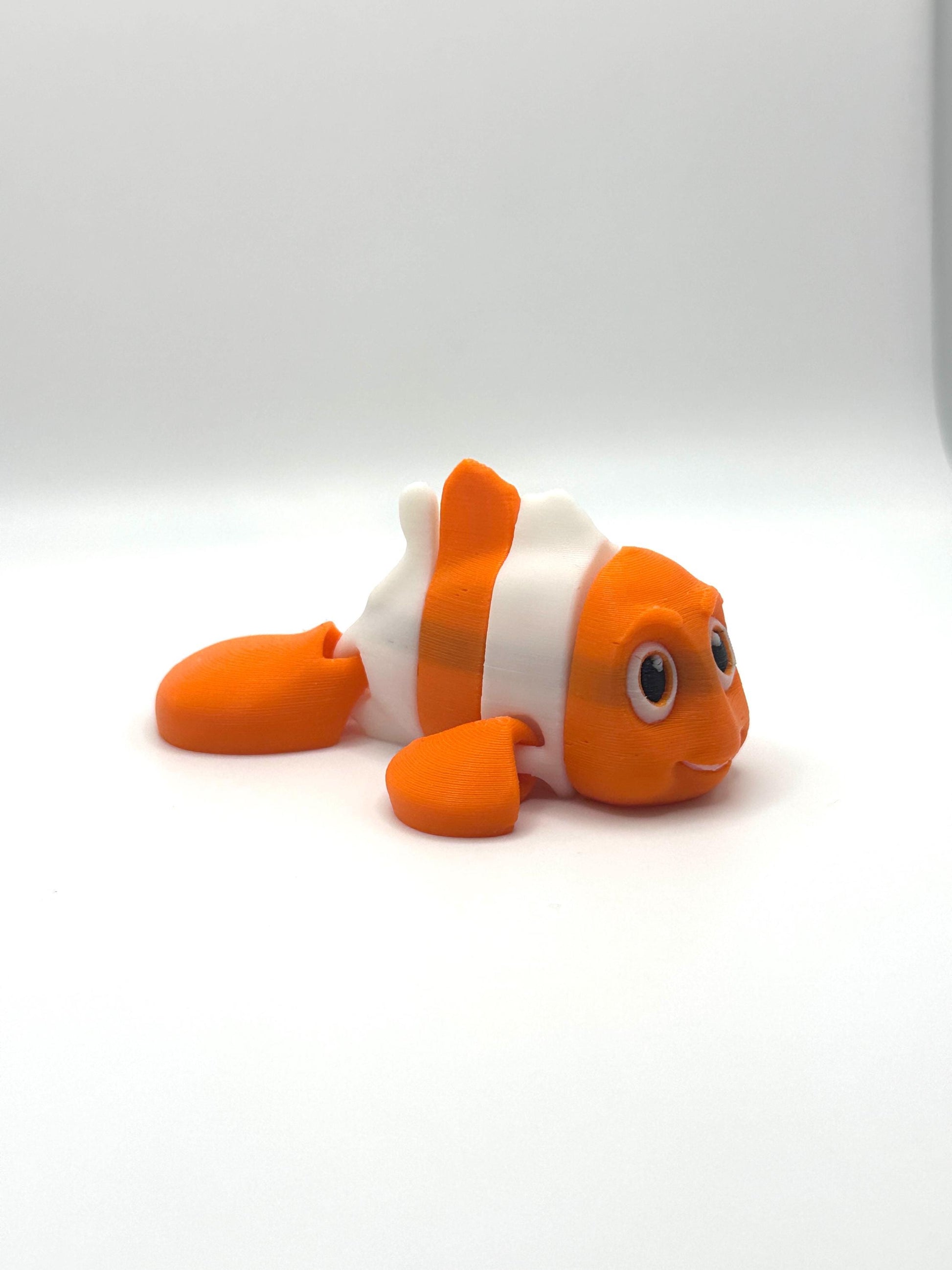 This adorable articulated clown fish is ready to swim into your heart! With its signature bright orange and white stripes, big expressive eyes, and flexible joints, this 3D printed fish makes a perfect gift for ocean lovers, kids, or collectors of cute aquatic creatures. Designed with attention to detail and printed in vibrant colors, this little reef resident is equal parts fun and functional—great as a fidget toy, desk buddy, or playful decor.
