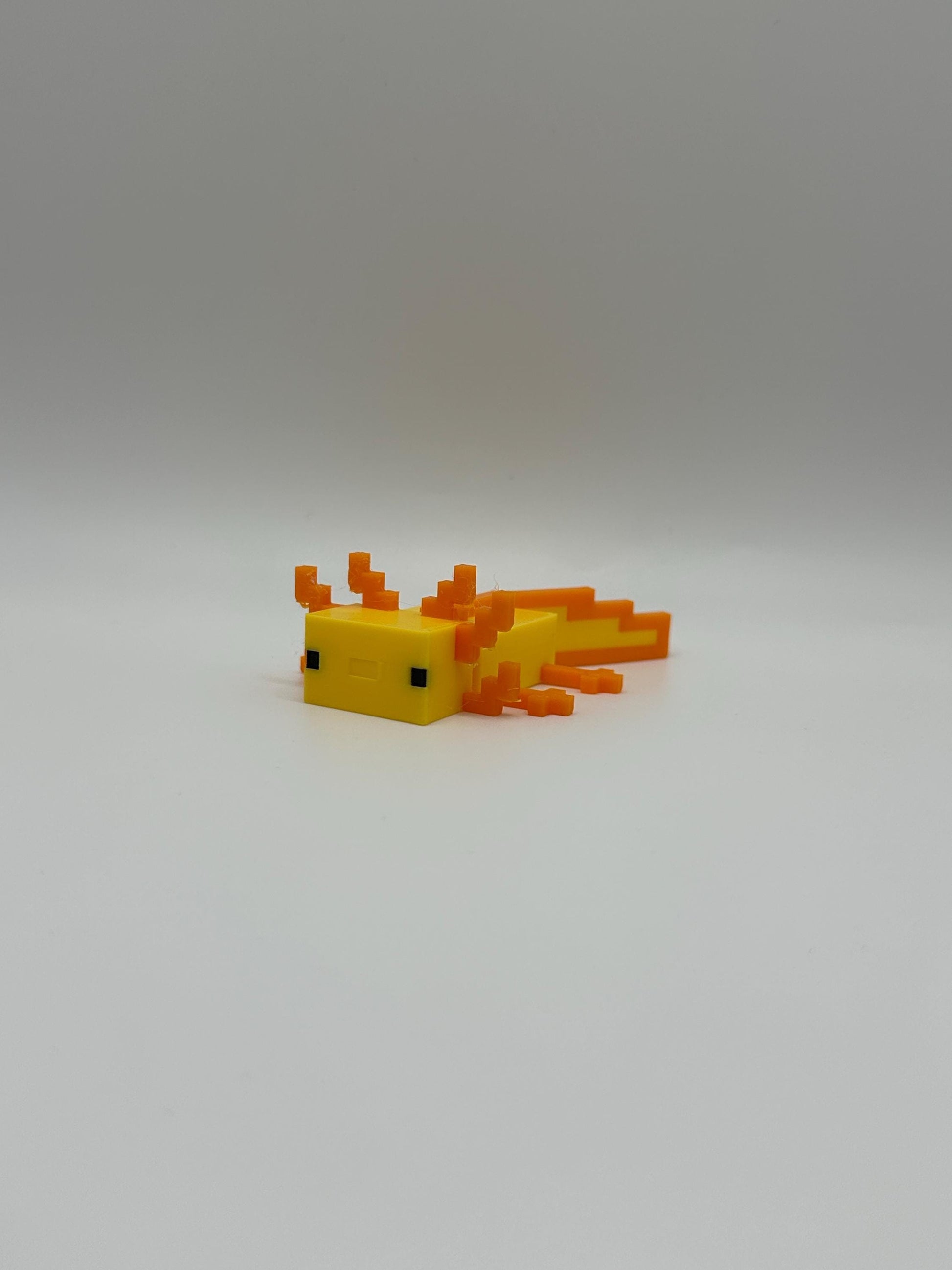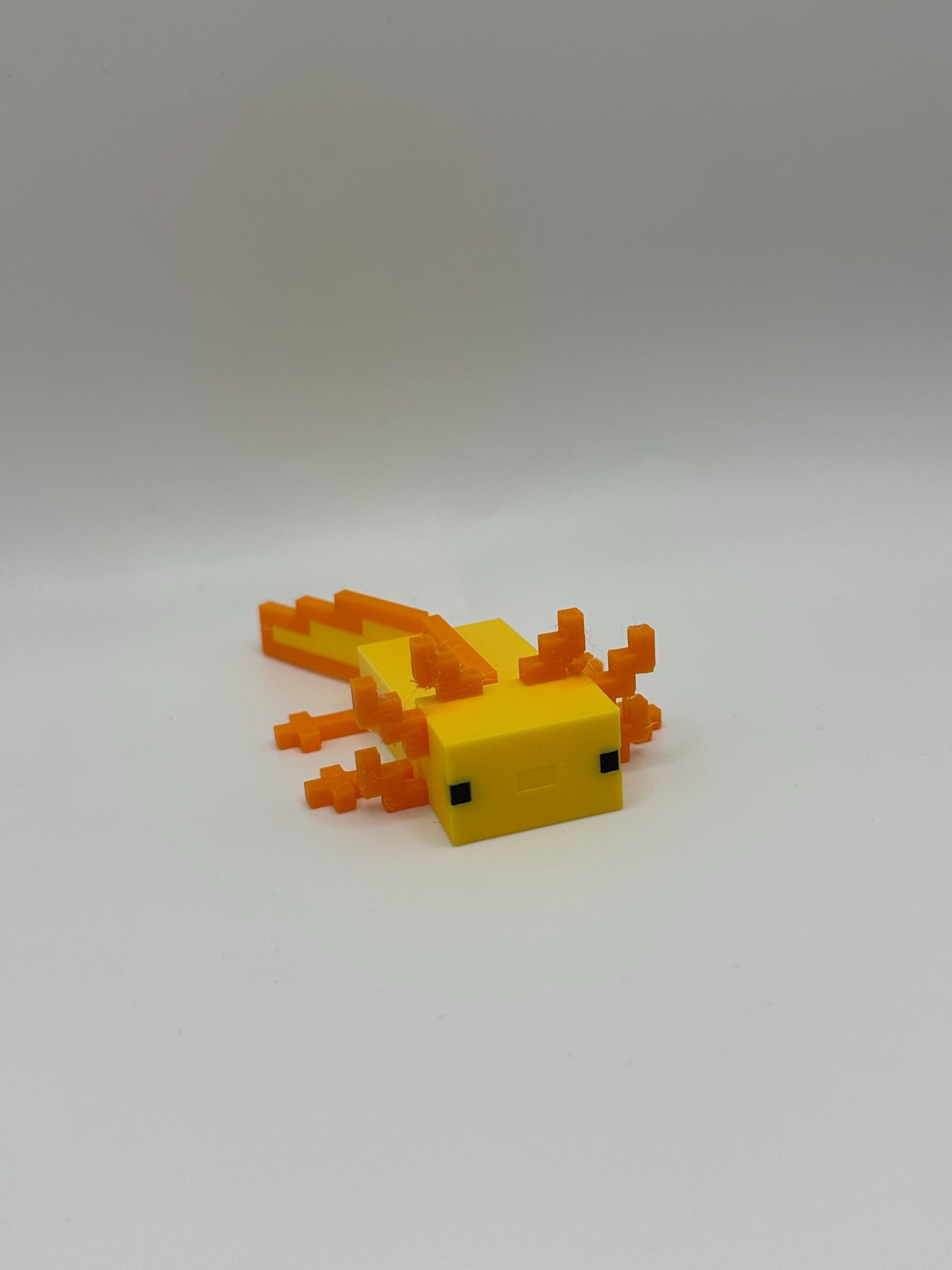 Say hello to the cutest little amphibian from your favorite pixelated world! This 3D printed articulated axolotl is inspired by the yellow axolotl figurine and features a vibrant blocky design with movable limbs and a posable tail. Perfect for fans of the game, animal lovers, or anyone who wants a unique, fidget-friendly desk companion.