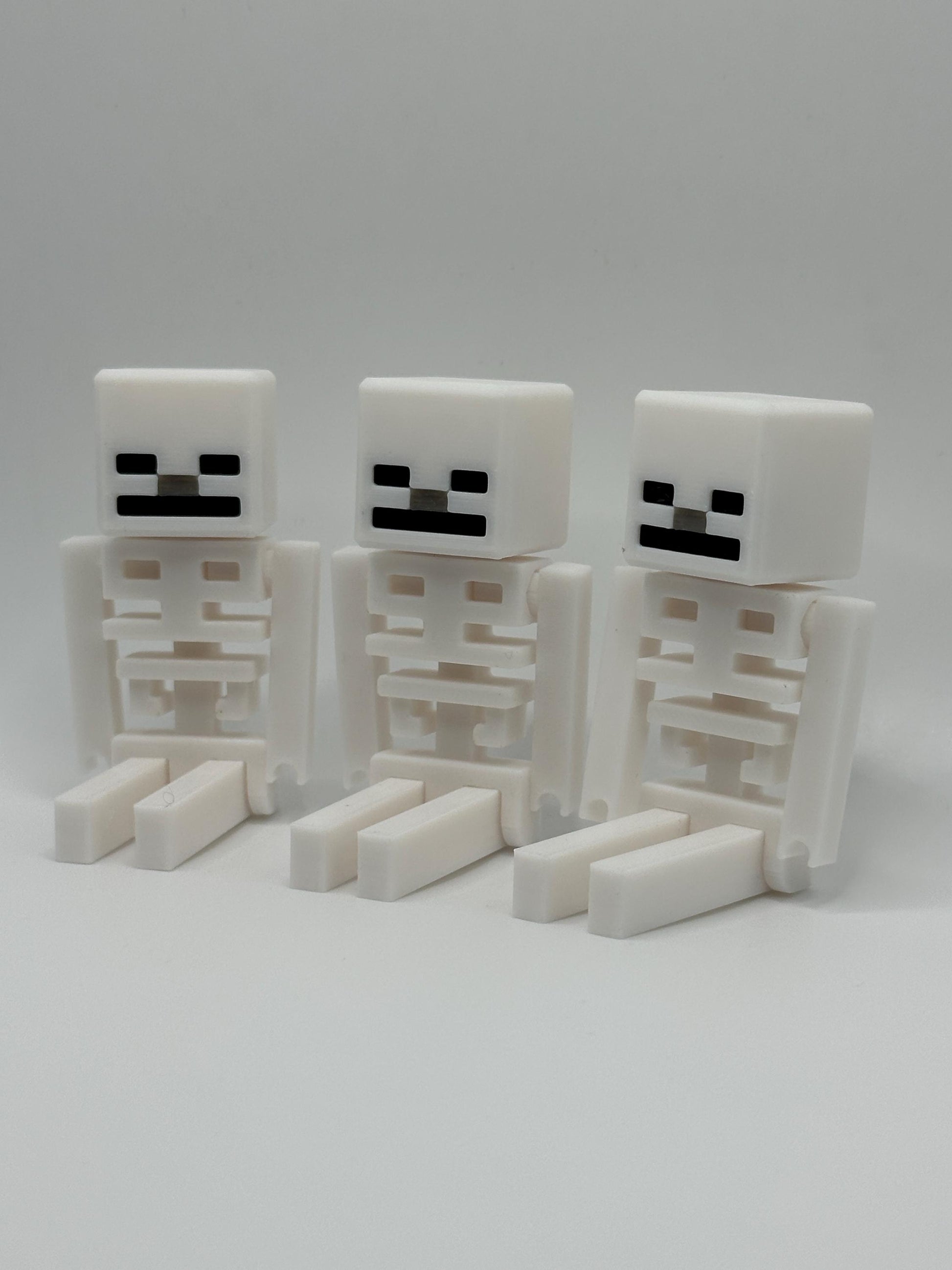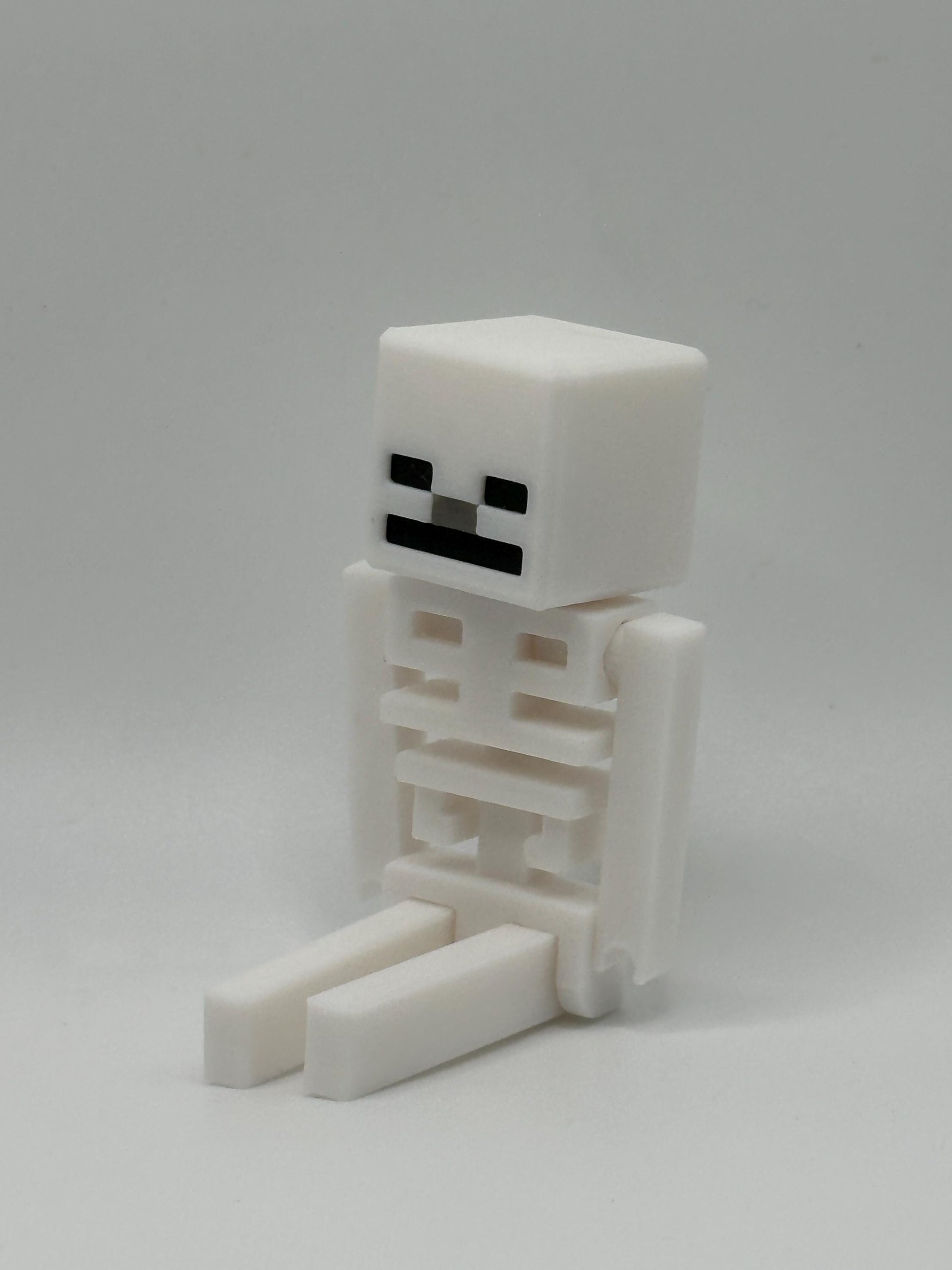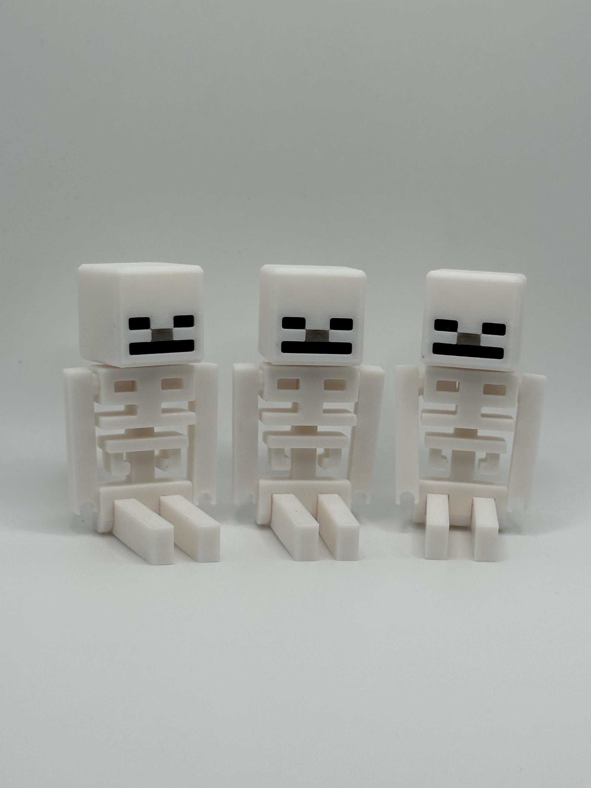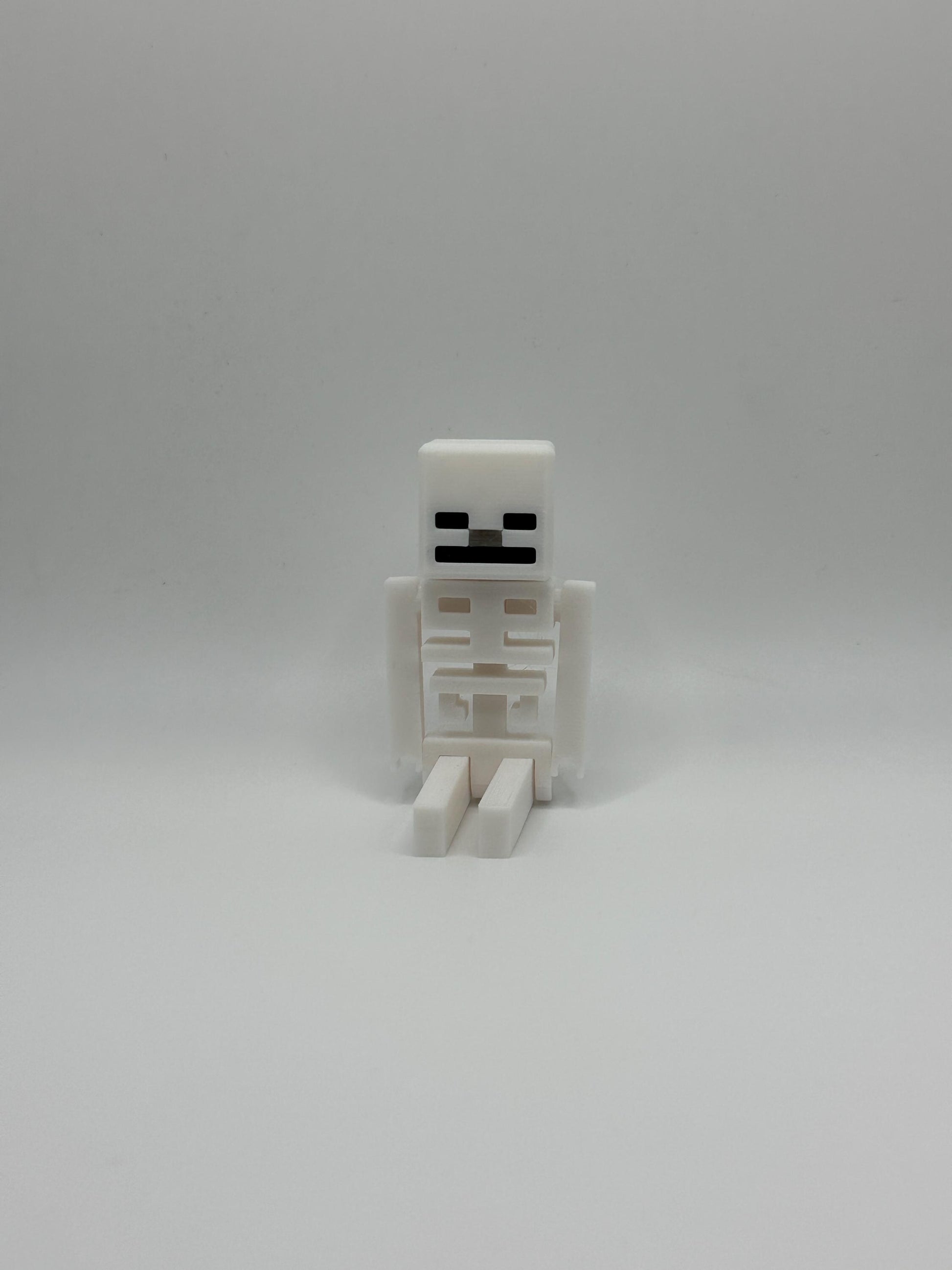Add a spooky-cool touch to your collection with this articulated skeleton figure! Made with precision 3D printing, this blocky baddie features moveable arms, legs, and head—perfect for posing or just chilling on your shelf. Its clean white design and pixelated face give it that signature in-game vibe fans will love.