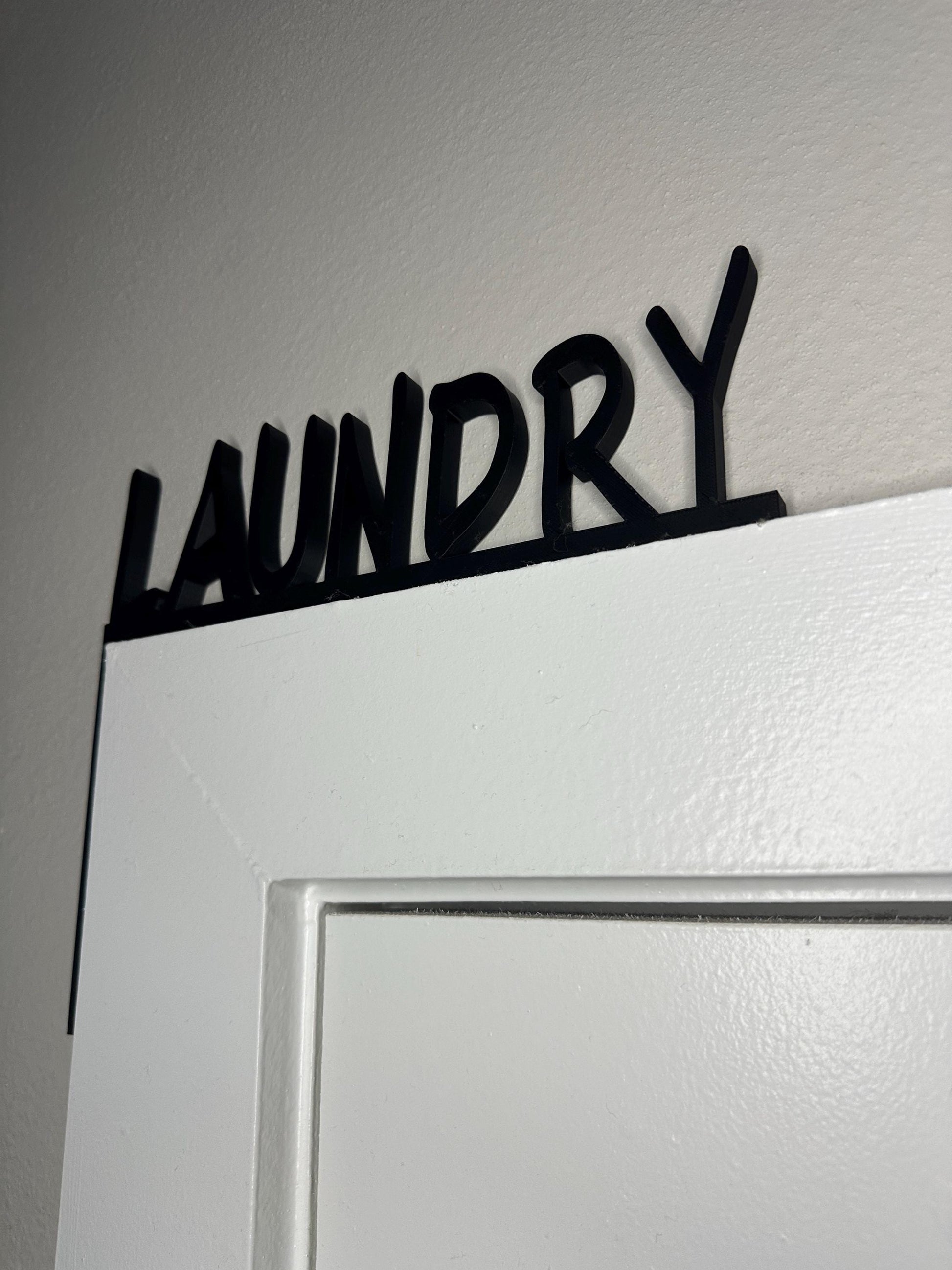 Elevate your home decor with this modern Laundry door frame sign! Designed to fit perfectly on the left side of your laundry room door frame, this 3D printed sign adds a clean, stylish label without damaging your walls or trim.