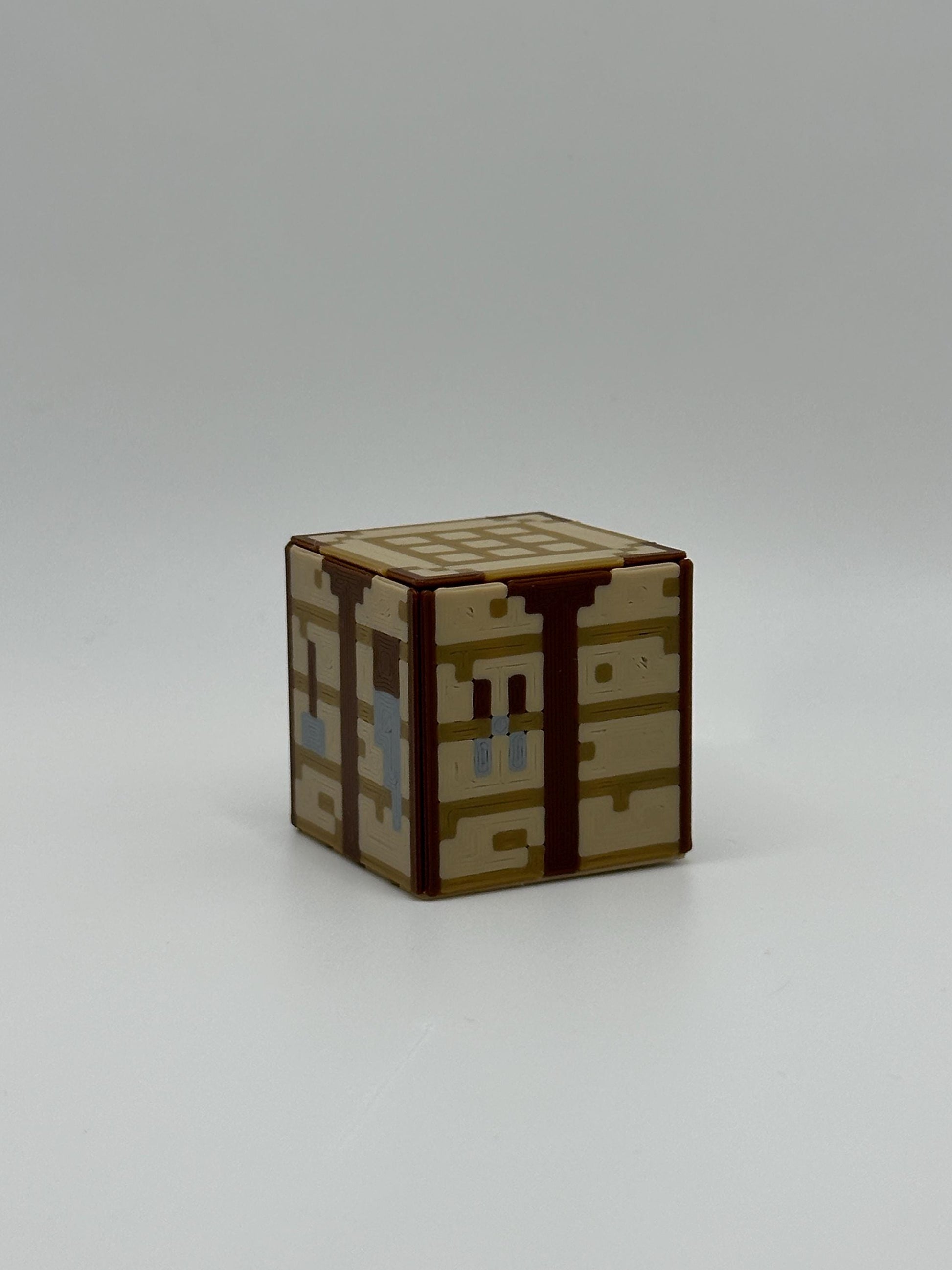 Level up your space with this game-inspired crafting table block! This 3D printed piece is perfect for themed shelves, desk setups, or as a fun little gift for gaming enthusiasts.