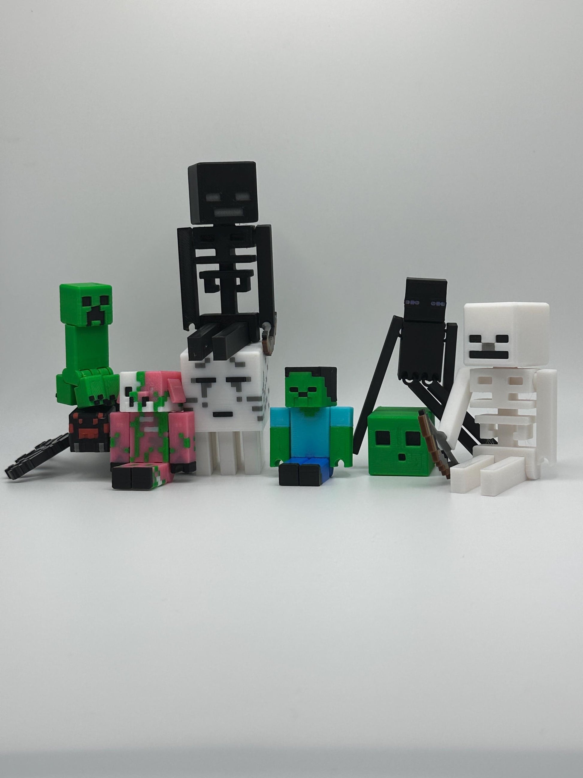 Level up your collection with this ultimate Mob Pack! This 9-piece set includes fan-favorite fantasy creatures, all 3D printed and articulated for poseable fun. Whether you’re a collector or just love iconic pixelated characters, this pack is an epic addition to your display—no assembly required.