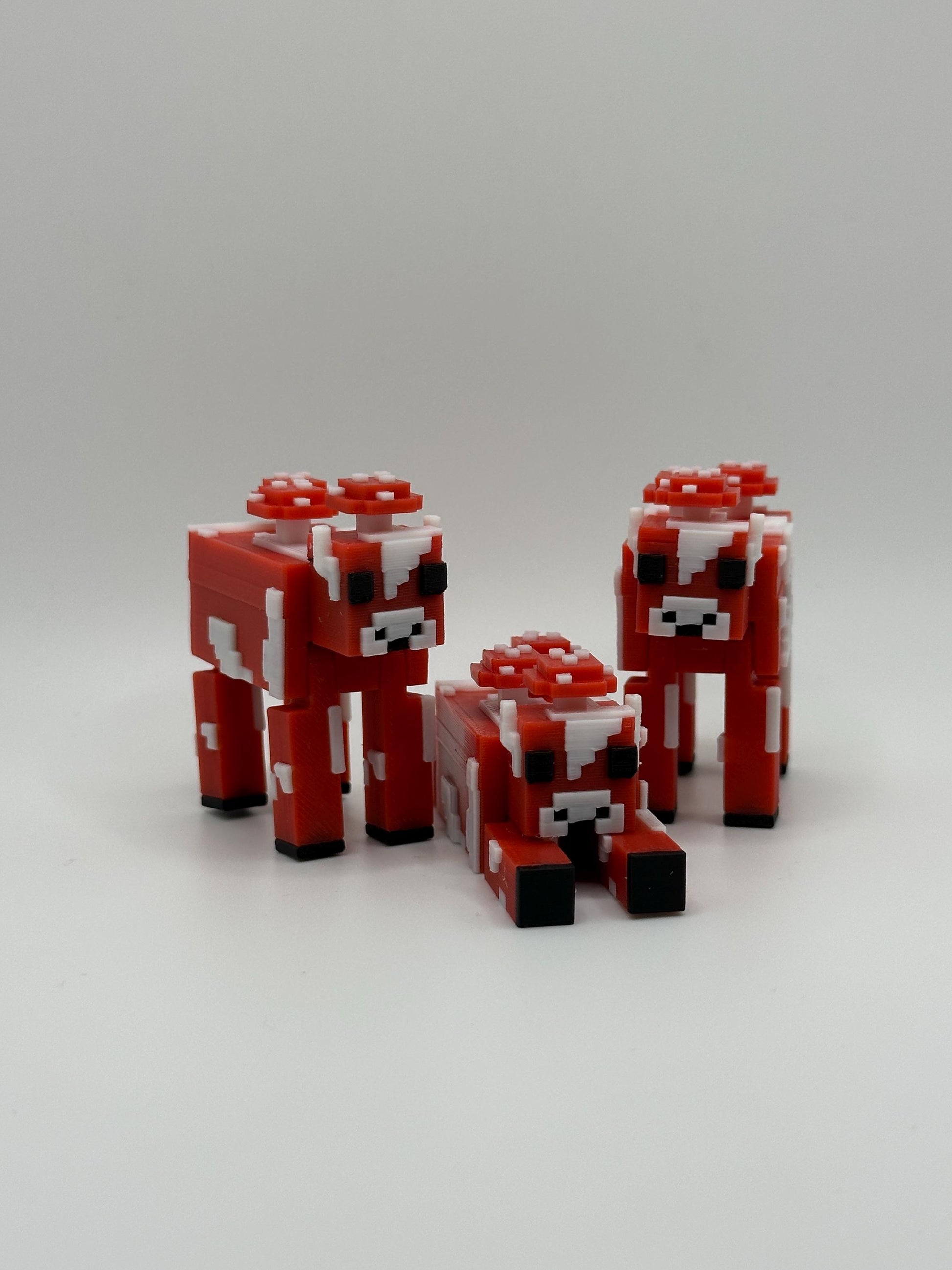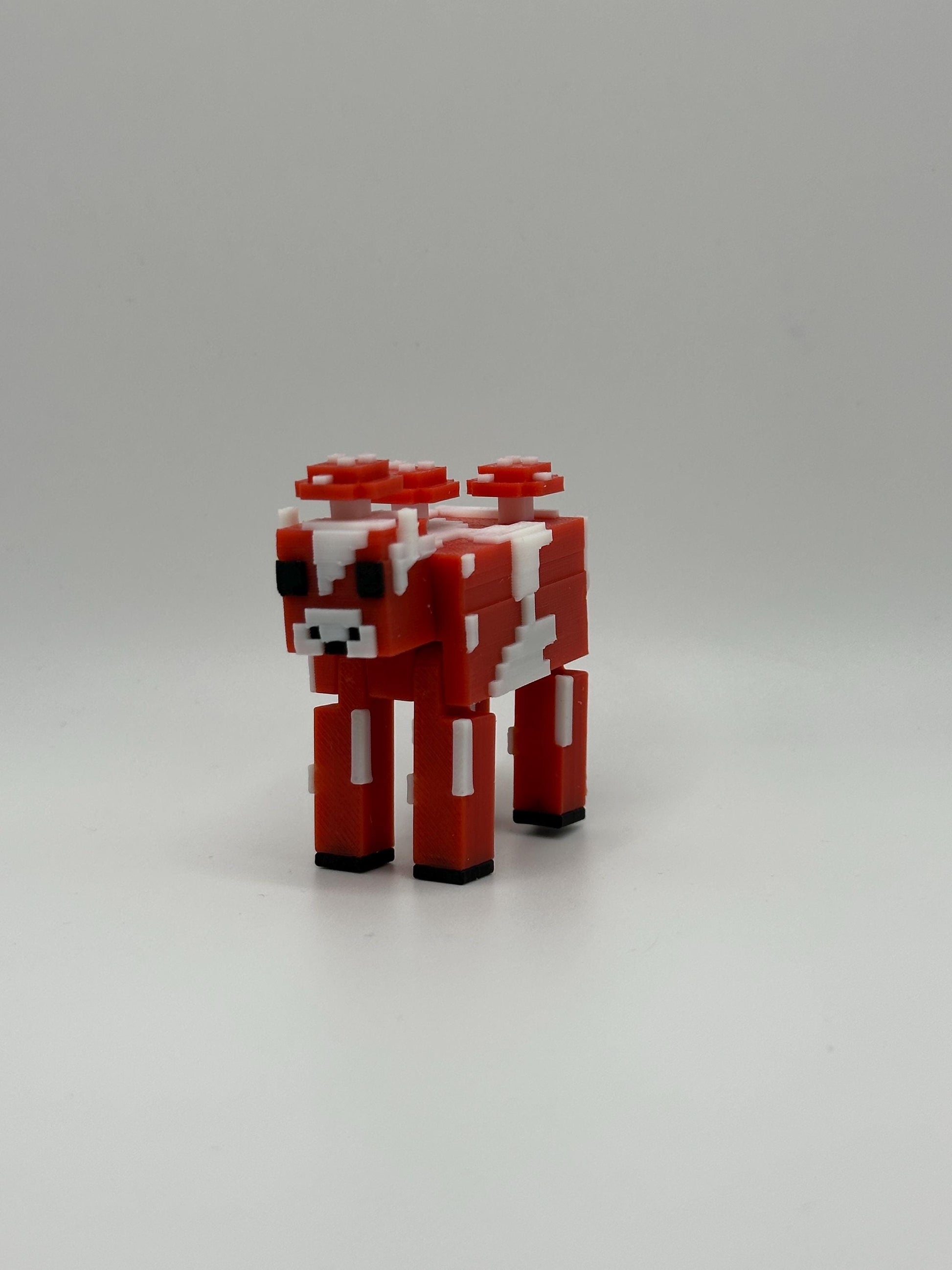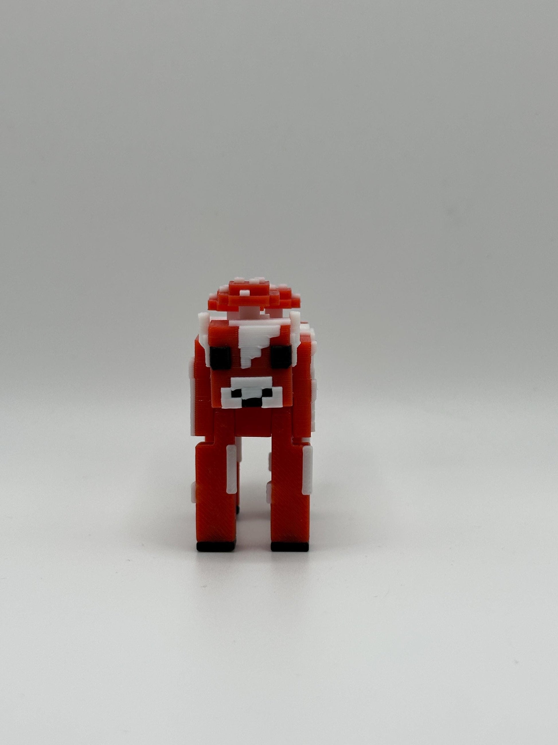 Add a pop of pixelated red to your collection with this mushroom-covered cow figure! This 3D printed figure brings the charm of a unique, blocky bovine design right to your display shelf. Perfect for collectors or anyone who loves pixelated fantasy creations, this articulated figure is ready to stomp its way into your heart (and your display space)!
