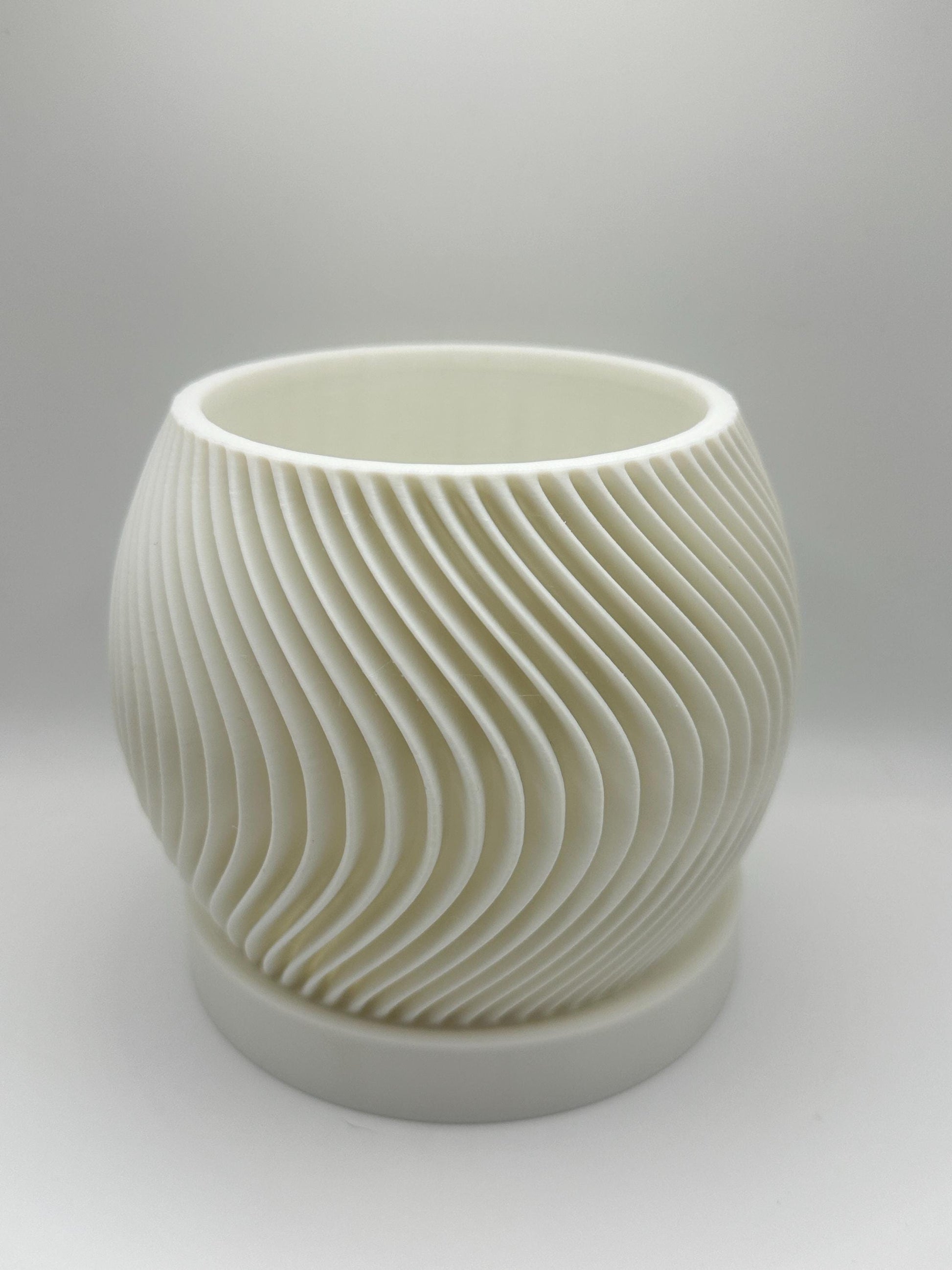 Bring a touch of modern elegance to your plant display with this beautifully designed spiral planter, complete with a matching drip tray. Featuring a sleek, textured swirl pattern, this planter is both functional and decorative, making it the perfect choice for succulents, houseplants, herbs, or small flowers.