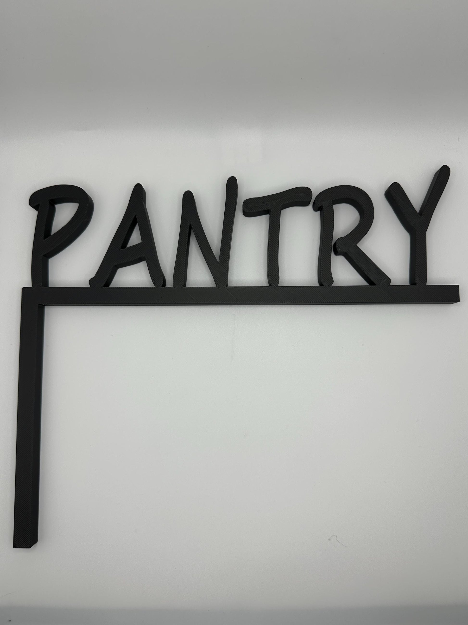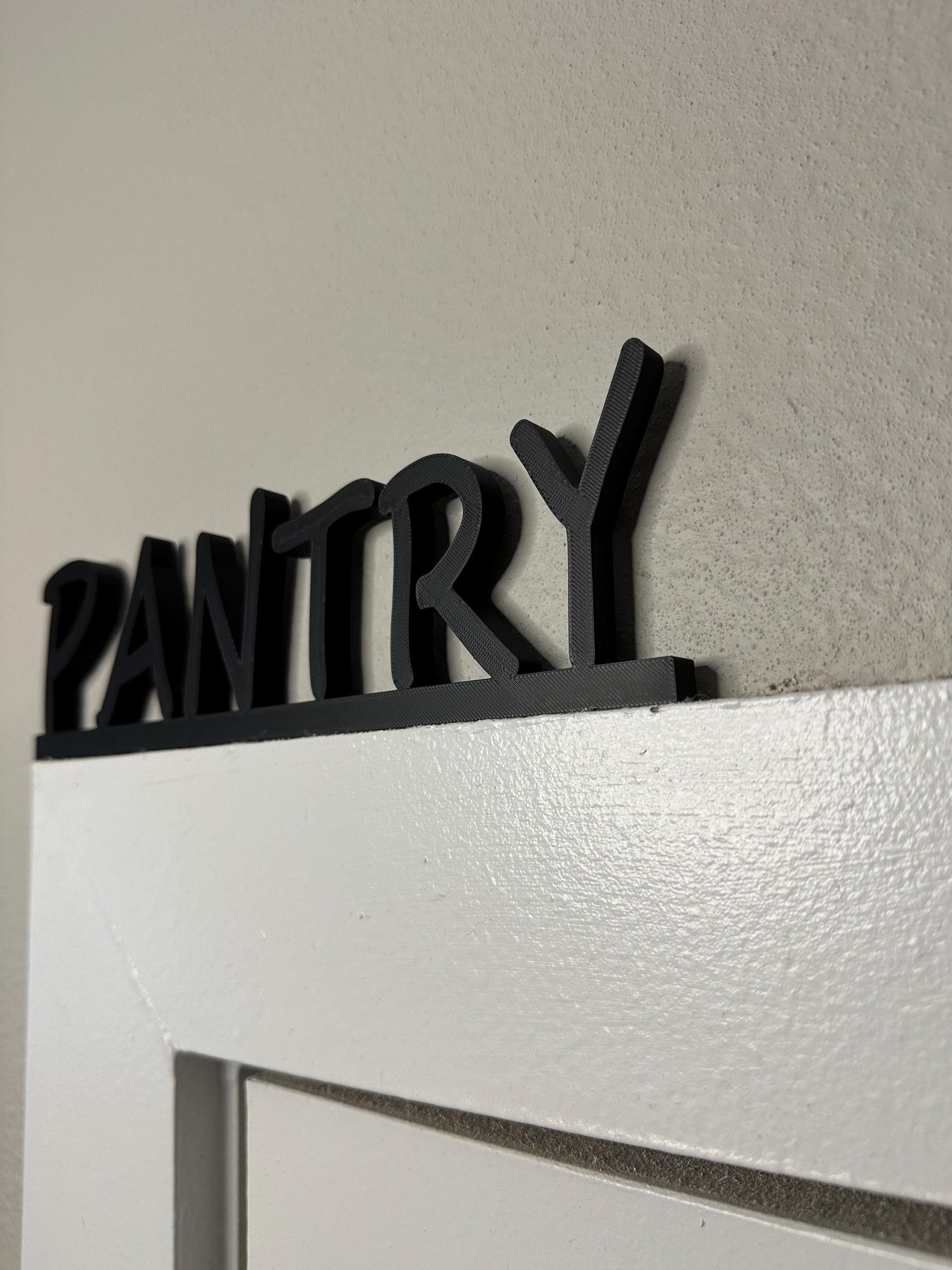 Add a stylish and functional touch to your kitchen with this unique “PANTRY” corner sign! Designed to fit the left side of a standard door frame, this minimalist 3D printed sign makes it easy to label your pantry without drilling or damaging your wall.